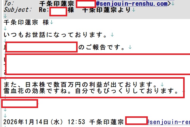これもひとえに千条印先生のお陰だと感謝してもしきれません。利益確定させて相続の資産を金融投資の原資とさせます。現時点で3人家族の金融資産が1億8,000万円を超えました!(内含み益は5,500万円)順調に資産は増加しております。
