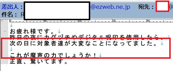 執行前ですが、上司(対象者T)について術効が出つつあるかもしれません。また、先日の池袋の事件で先生の力が強まっていると聞きました👀✨まだ行けていないのですが、近々私もサンシャインに赴こうと思います♬<略>